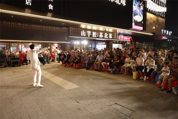 “瀆上·老西門”新時(shí)代文明實(shí)踐街區(qū)自開街以來(lái)一直是市民們享受夜間文化生活的新潮聚集地。入夏后,鹽都區(qū)精準(zhǔn)對(duì)接群眾需求,因地制宜組織了一系列高顏值、高品位、高質(zhì)量的夜間文明實(shí)踐活動(dòng)。“登瀛老茶館”安排了各類經(jīng)典劇目,讓喜歡傳統(tǒng)戲曲的群眾過(guò)足癮;露天劇場(chǎng)喚起大家童年美好記憶,同時(shí)展示了中國(guó)幾代人拼搏奮斗的記憶;騰飛書局擁有豐富的閱讀資源開展全民閱讀,積極打造本地文化名片。